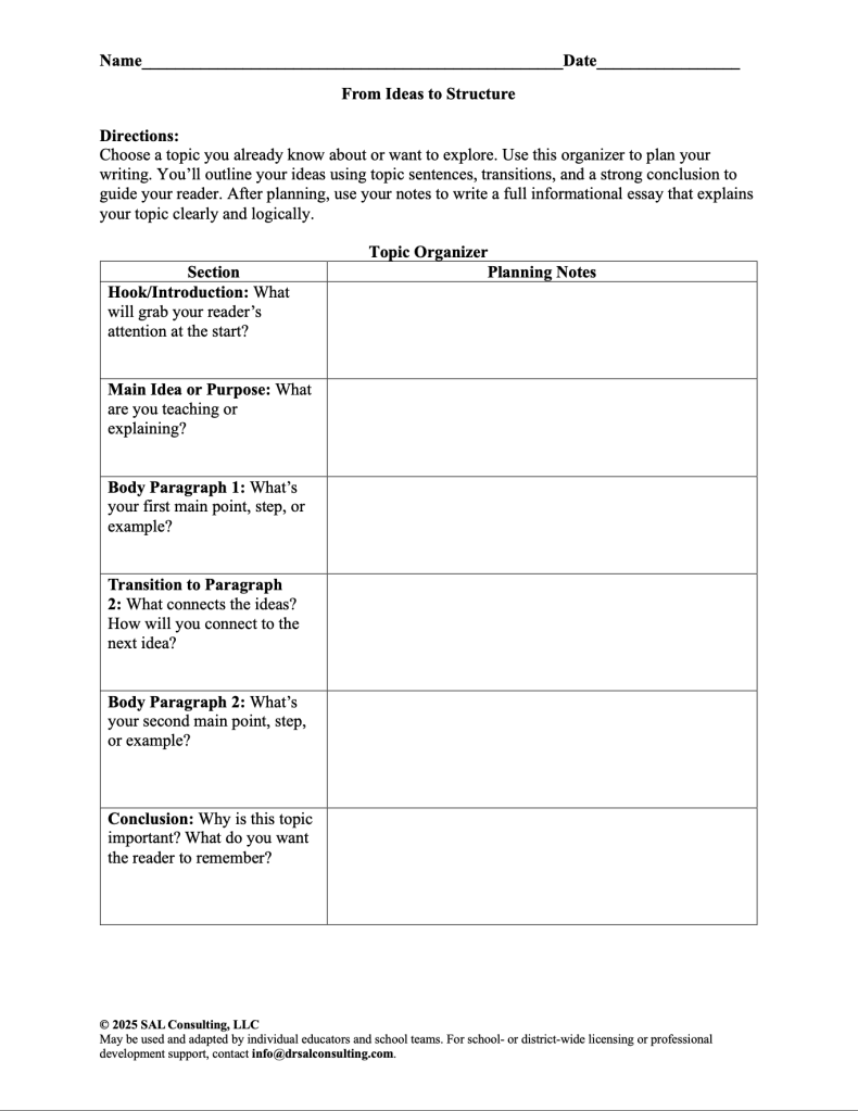 This work began in classroom teaching, was strengthened through literacy coaching and collaborative planning, and has been refined across diverse school and teacher learning contexts over two decades. The result is a practical, educator-facing approach to inquiry tool design that supports planning, instruction, and evidence-based student thinking.